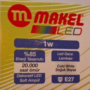 لامپهای LED اتاق خواب 1 وات ماکل در رنگ های متنوع که یکی از معروفترین برندهای لامپ در ترکیه میباشد.