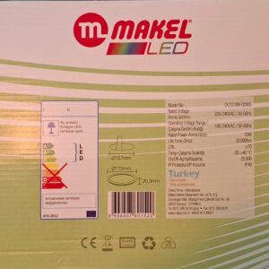 پنل LED توکار باریک گرد 9 وات ماکل که یکی از معروفترین برندهای پنل ال ای دی در ترکیه میباشد.