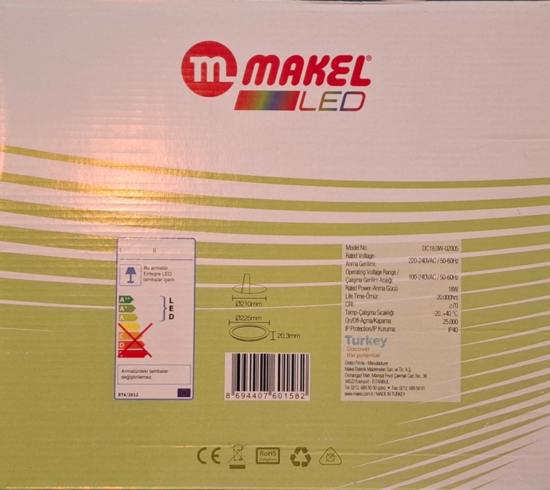 پنل LED توکار باریک گرد 18 وات ماکل که یکی از معروفترین برندهای پنل ال ای دی در ترکیه میباشد.