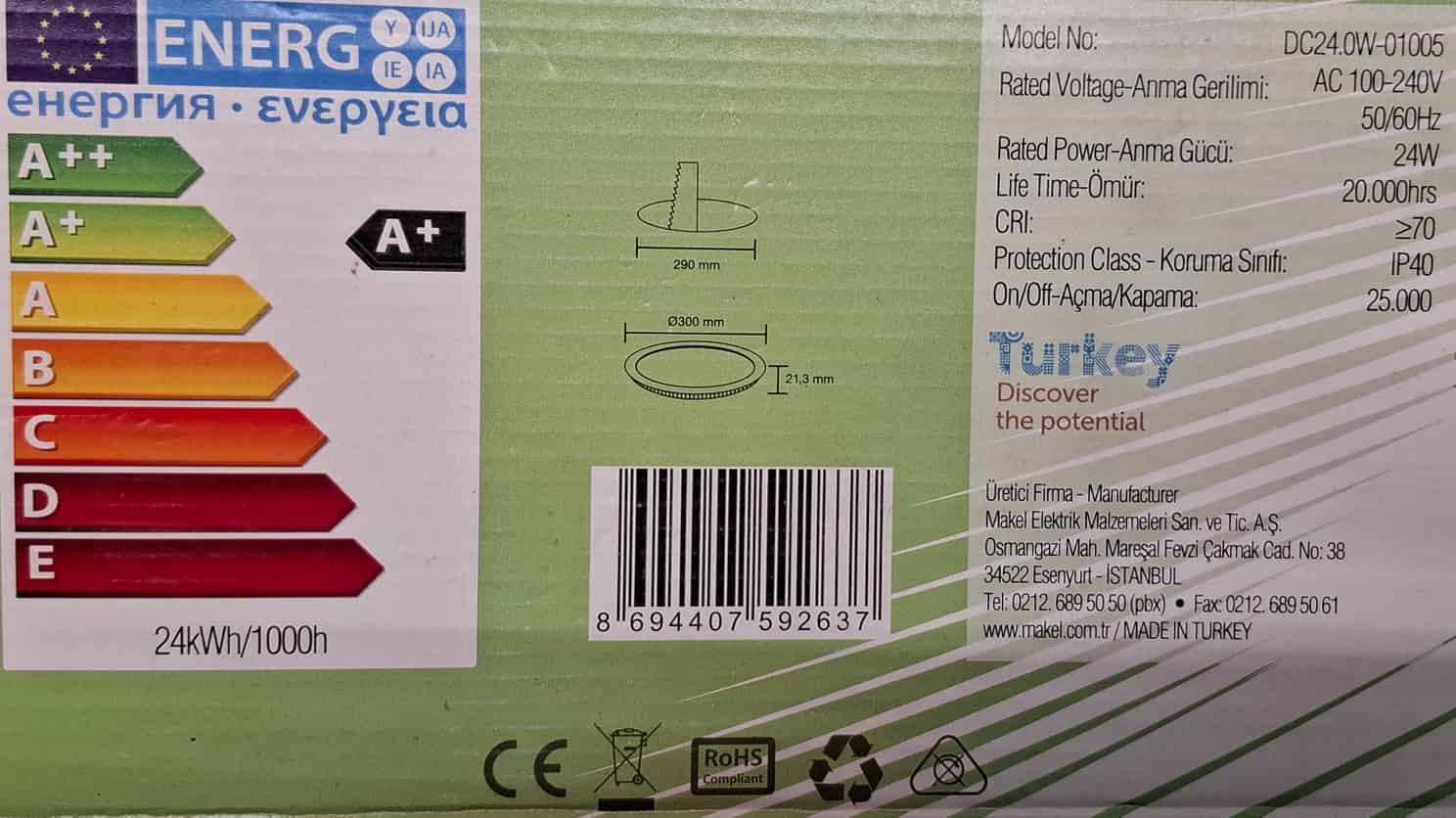 پنل LED توکار باریک گرد 24 وات ماکل که یکی از معروفترین برندهای پنل ال ای دی(LED) در ترکیه میباشد.
